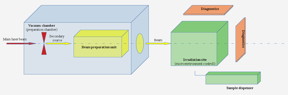 The equipment was primarily designed for experiments with ionizing radiation, but can be suitable for experiments with lasers that must be performed in an atmospheric environment, as well. Due to its nature, it is primarily recommended for applied research such as: studying industrial applications of lasers (i.e. material processing), remote sensing or studies related to laser safety, as well as for studies of effects of laser light on biological or non-biological samples. Well-equipped chemical and biological laboratories are available for the preparation and processing of illuminated samples. Since a complete dosimetry system is available, it is possible to measure radiation exposure from ionizing radiations generated during various laser applications (especially for industrial applications).